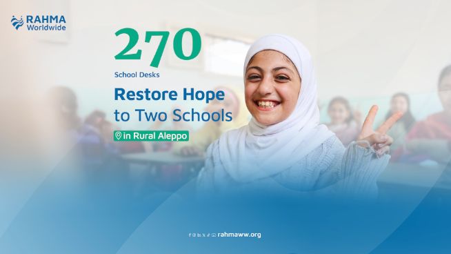 In northern rural Aleppo, hope reached the schools of Kafrnaya and Sheikh Hilal, where Rahma Worldwide distributed 270 school desks to children deprived of education for years.